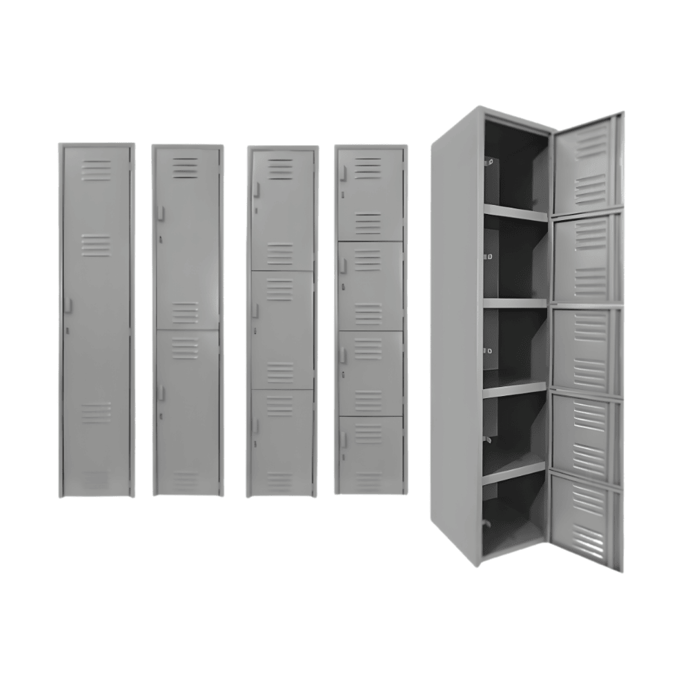 Descripción: Nuestros lockers metálicos son la solución perfecta de almacenamiento seguro para espacios de trabajo, gimnasios, escuelas e industrias. Fabricados en serie con acero de alta resistencia, ofrecen durabilidad y funcionalidad. Su diseño robusto garantiza la seguridad de las pertenencias personales, mientras que las rejillas de ventilación aseguran un flujo de aire adecuado. Son ideales para cualquier entorno que requiera gavetas personales o casilleros de seguridad.